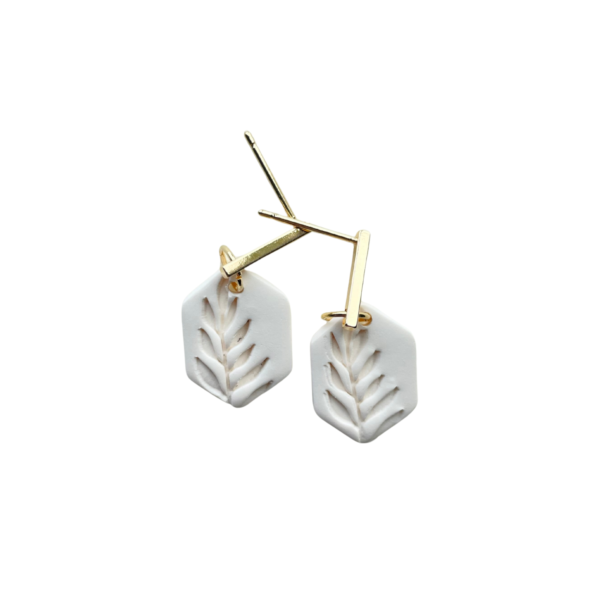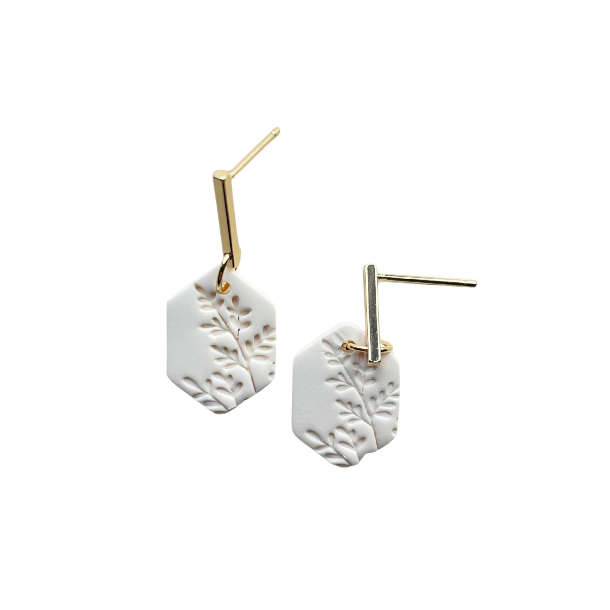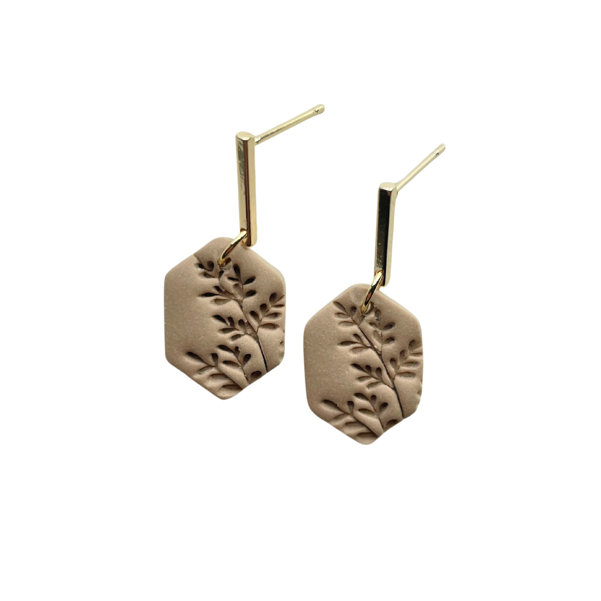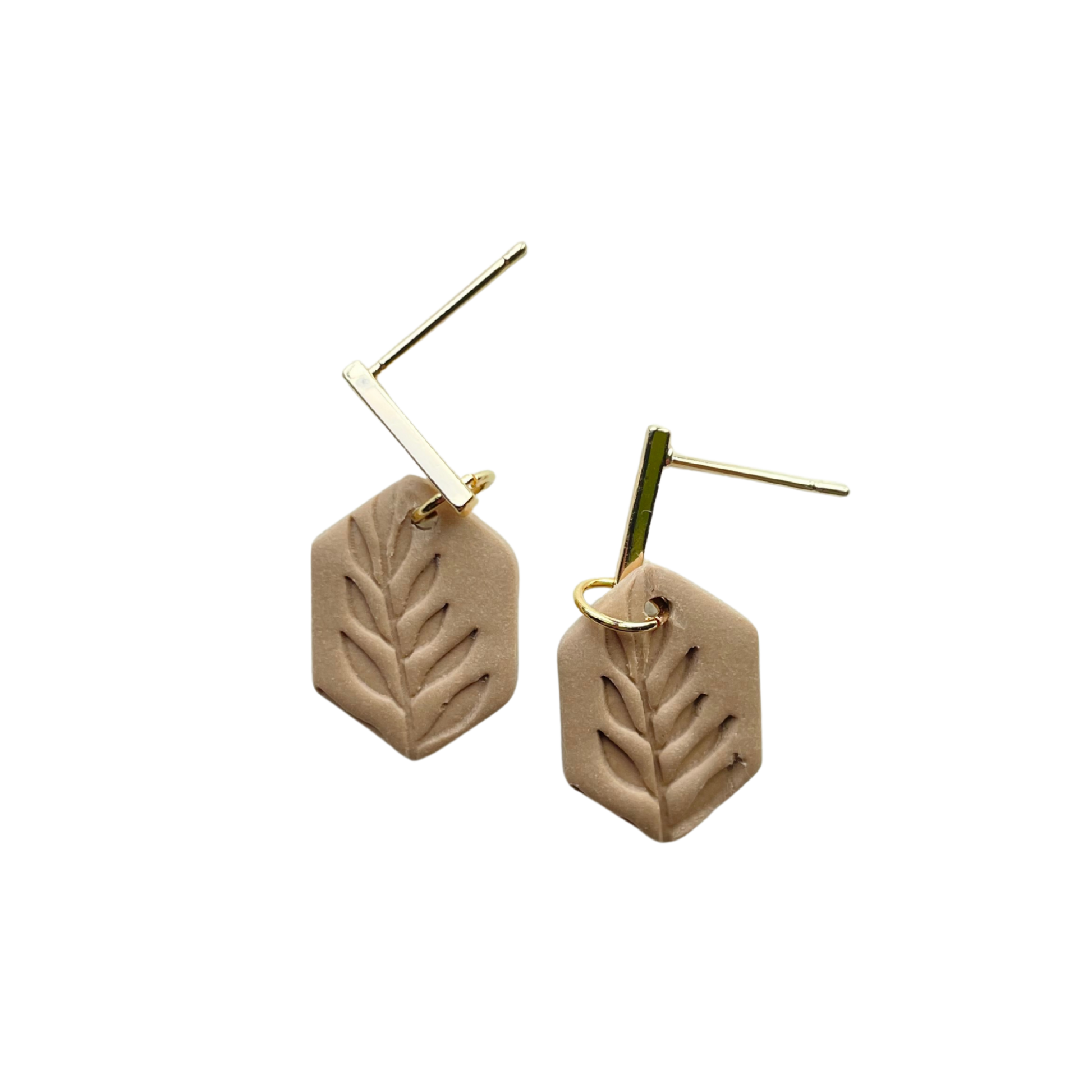 • All clay earrings are made by hand in our East TN studio. Each piece is carefully mixed, cut, sanded, and assembled using 18k gold plated, hypoallergenic findings.