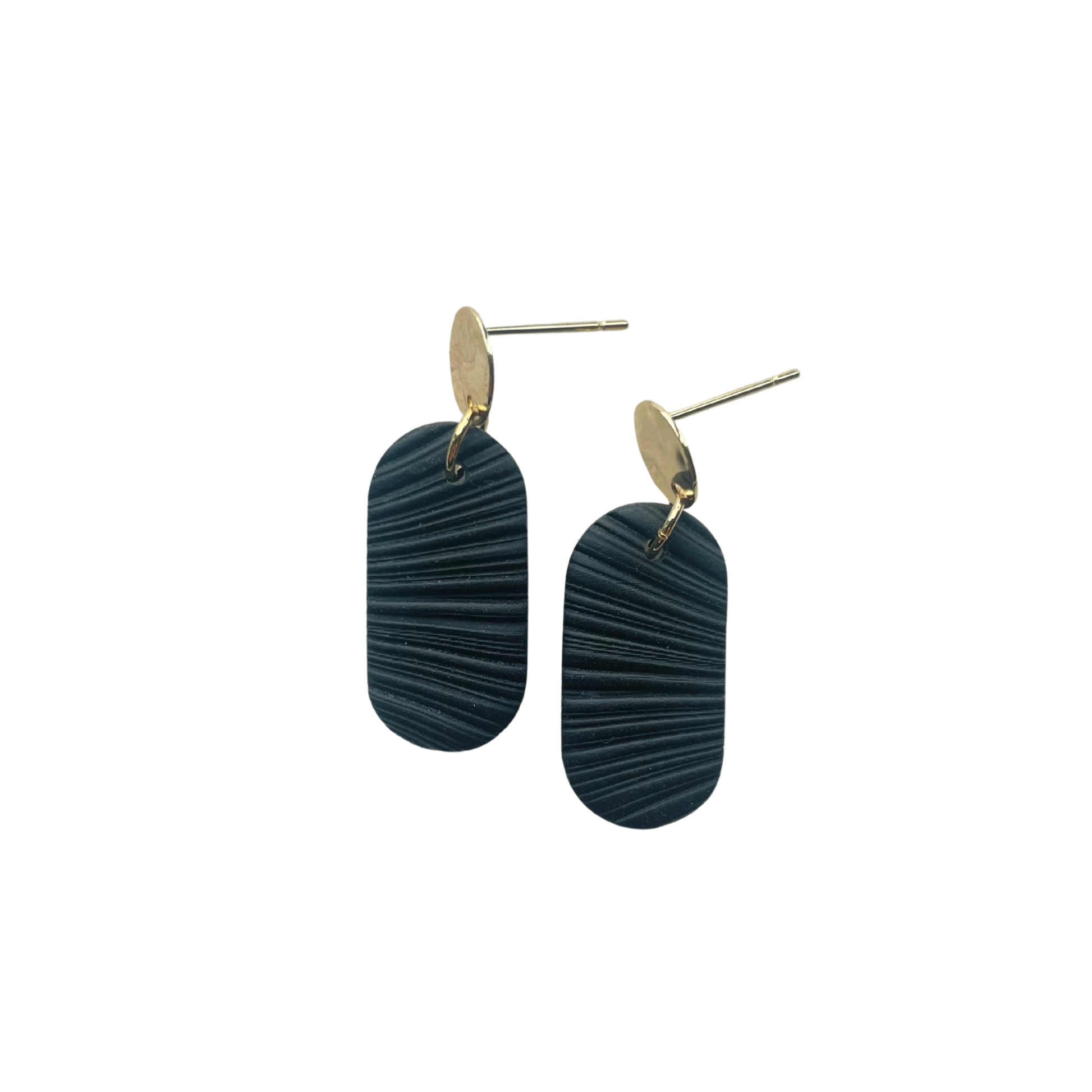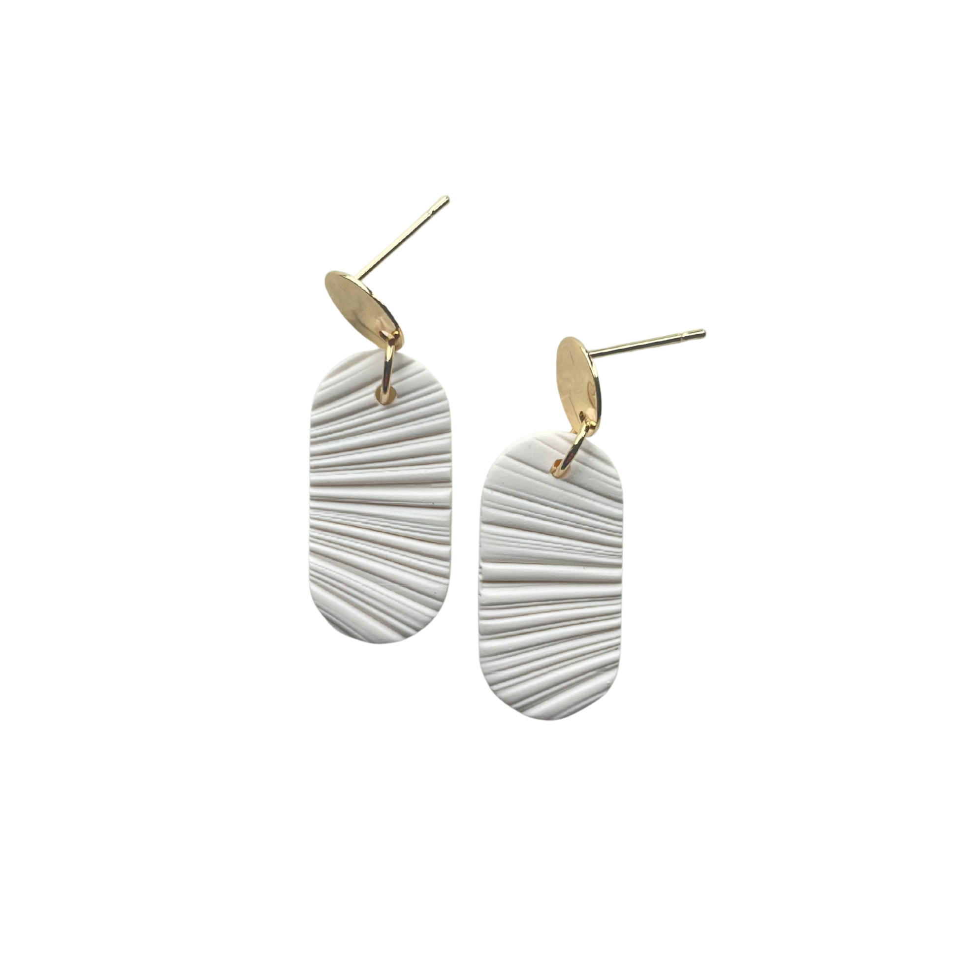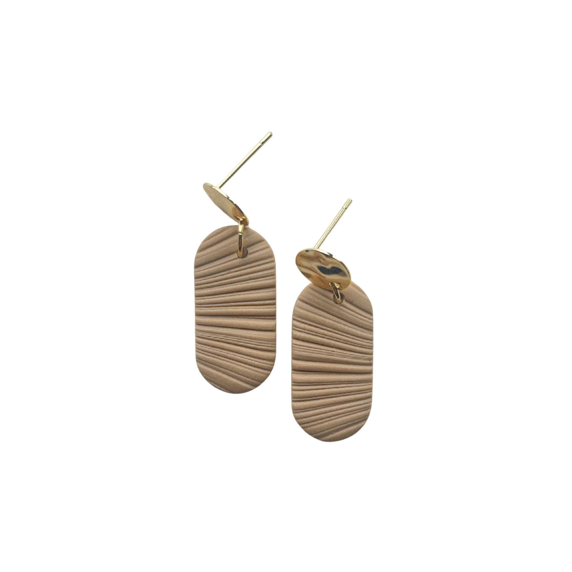 • All clay earrings are made by hand in our East TN studio. Each piece is carefully mixed, cut, sanded, and assembled using 18k gold plated, hypoallergenic findings.