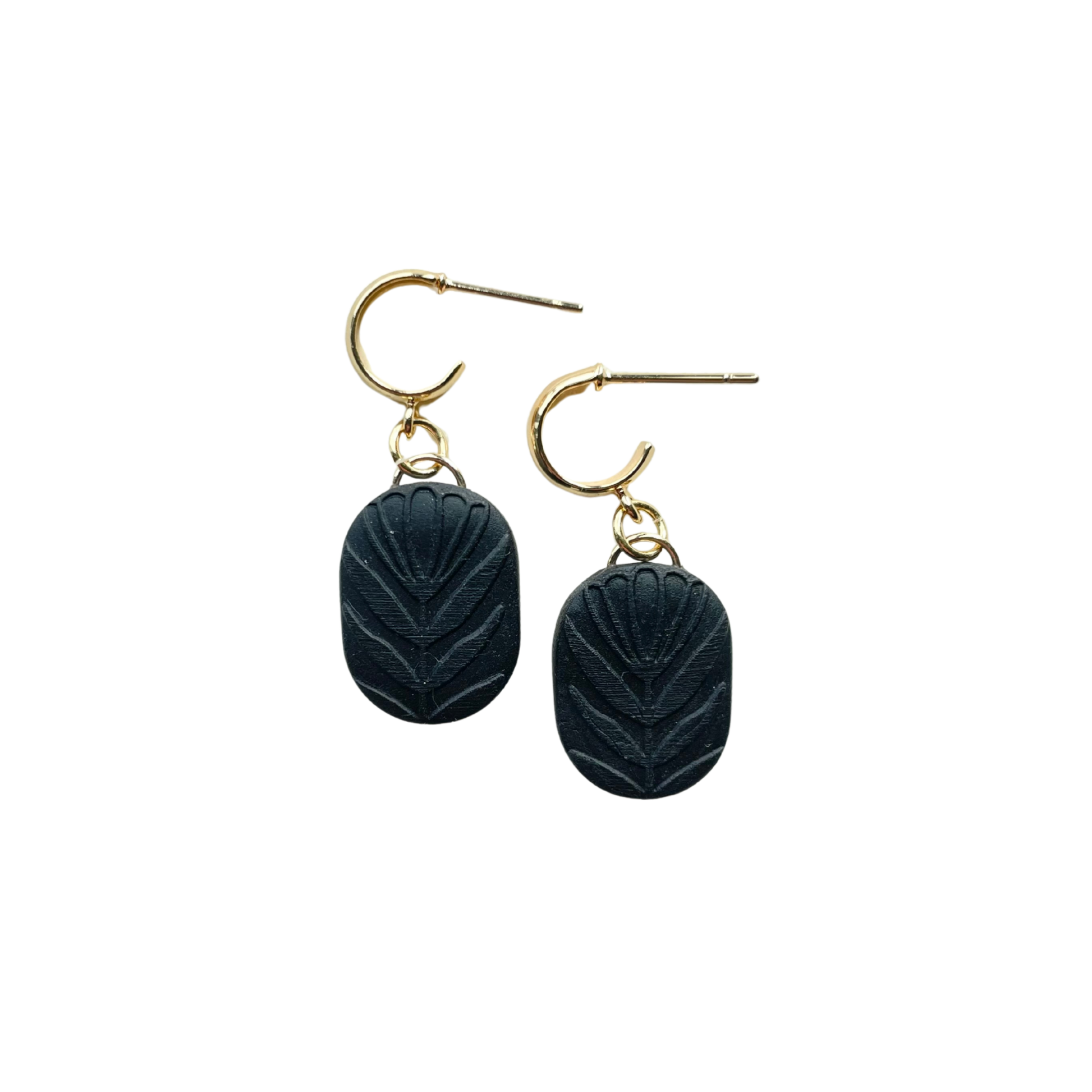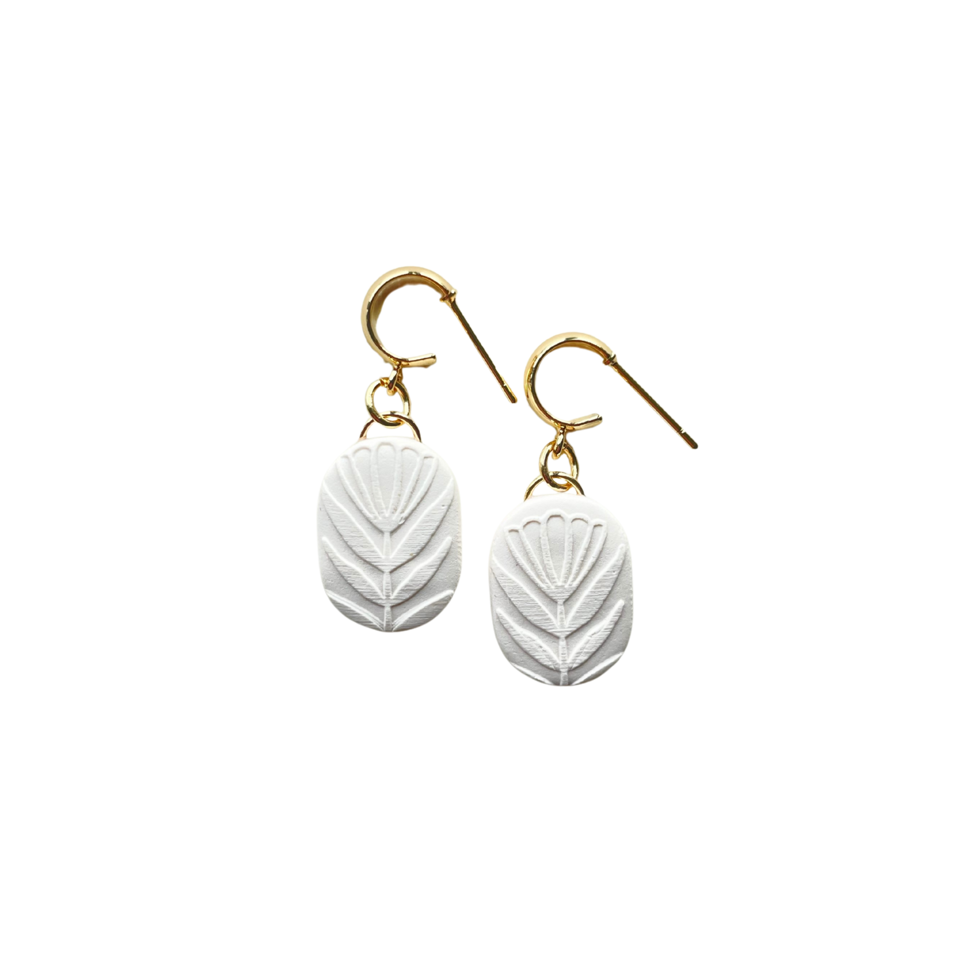 • All clay earrings are made by hand in our East TN studio. Each piece is carefully mixed, cut, sanded, and assembled using 18k gold plated, hypoallergenic findings.