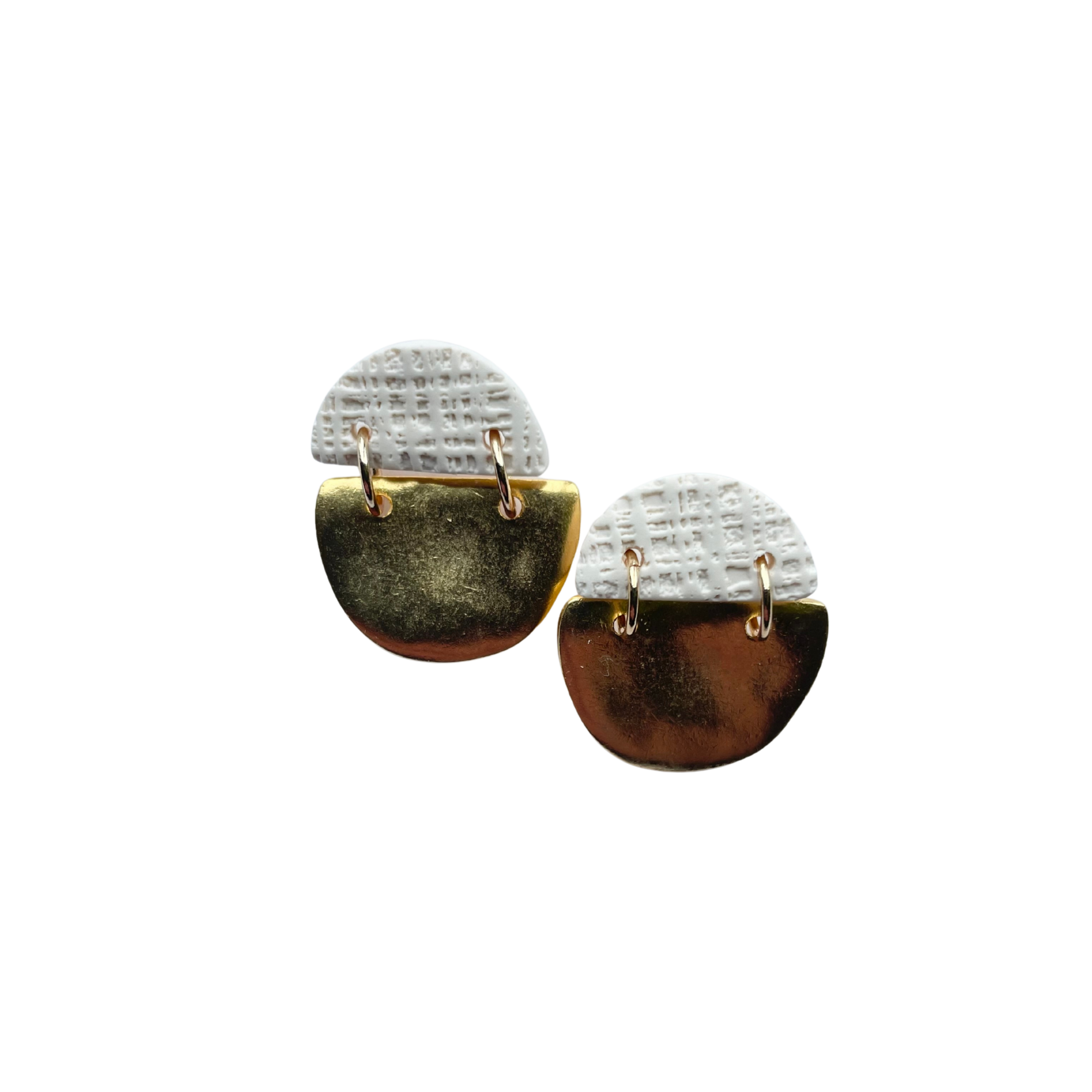 • All clay earrings are made by hand in our East TN studio. Each piece is carefully mixed, cut, sanded, and assembled using 18k gold plated, hypoallergenic findings.