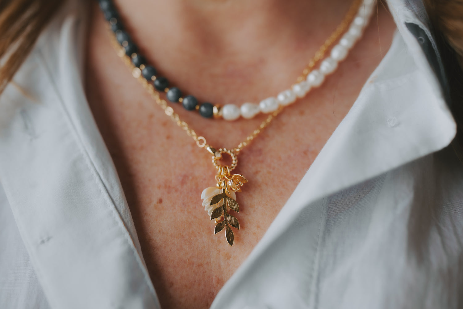 JBS Mercantile's JADE line features jewelry made with either 18k gold plated or gold filled findings. Stones and pearls are considered semi precious and of the highest quality.